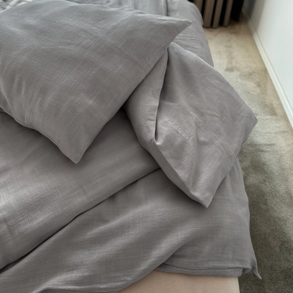 Decentní výšivka v barvě povlečení. Povlak na polštář i povlečení na peřinu mají skrytý zip.