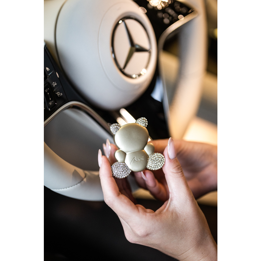 Je to dáma! Vystihuje ji elegance a ladnost, jež v propojení s interierém vašich vozu vám vytvoří sladkou atmosféru. Ano, tohle přesně umí medvídek Honey Gold. A co víc, pyšním se přesně 150 kusy ručně vkládaných českých křišťálů firmy Preciosa, které společně s vůní Lime & Red Fruits vytváří dokonalé sladké souznění.