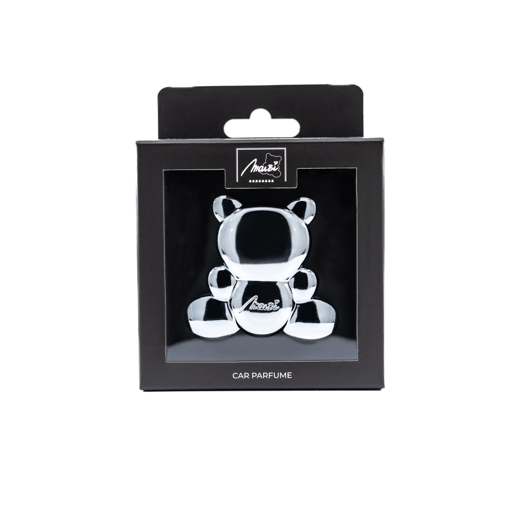 Jsem medvídek MaiBi, v němž se každý Váš obličej zrcadlí. Jsem medvídek SILVER FACE. Upoutám pozornost nejen mužů, ale i žen. Dokonalým propojením neutrální stříbrné s vůní Wood & Citrus Vám dodám jedinečný prožitek z jízdy a designovým vzhledem podtrhnu interiér každého vozu. Intenzitu vůně si regulujete pomocí ventilace dle vlastní potřeby.