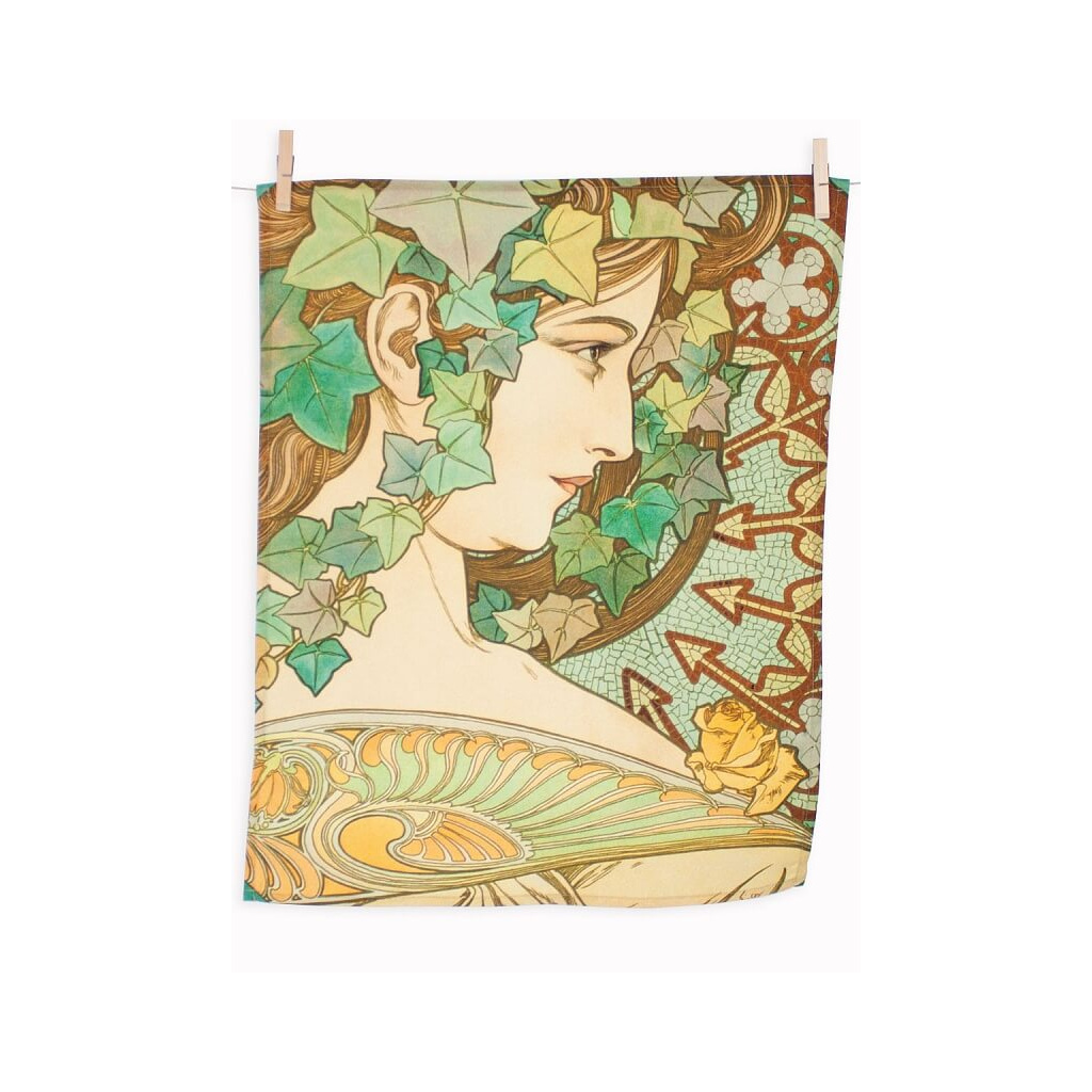 Kolekce bavlněných kuchyňských utěrek s kresbami Alfonse Muchy vnese do vaší kuchyně jediněčnou atmosféru. Nejmodernější digitální tisková technologie zajišťuje zářivé barvy a precizní detaily.