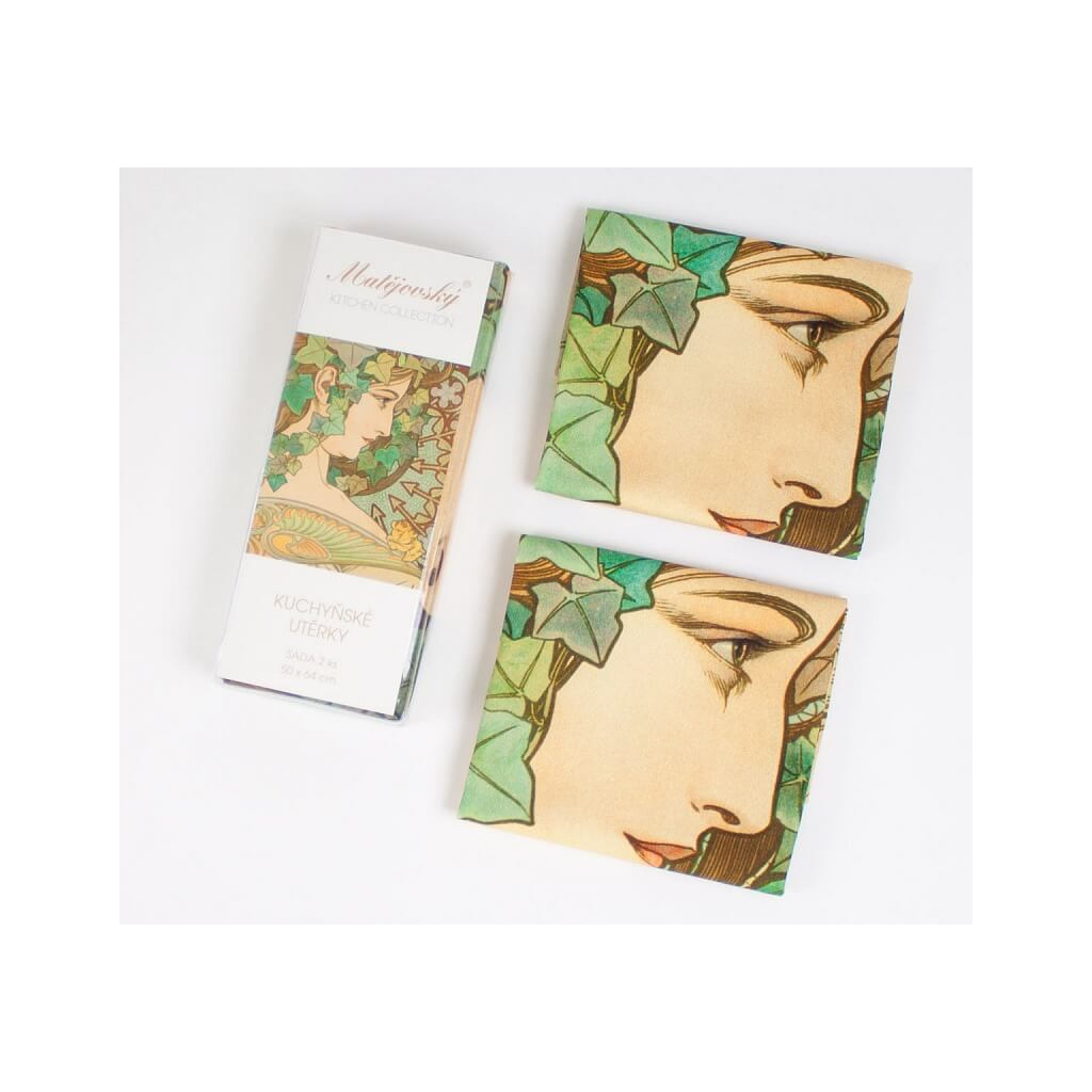 Matějovský kuchyňské utěrky Alfons Mucha Břečťan a vavřín 2 kusy