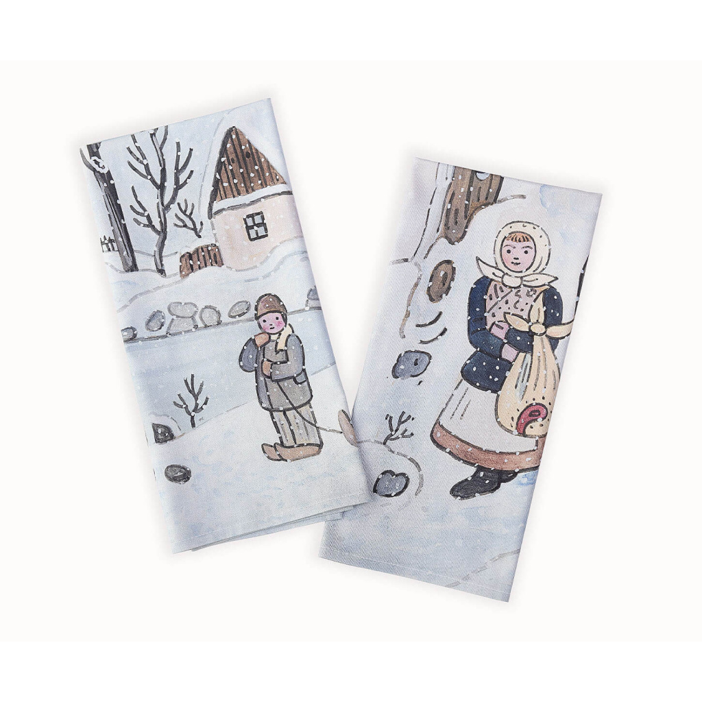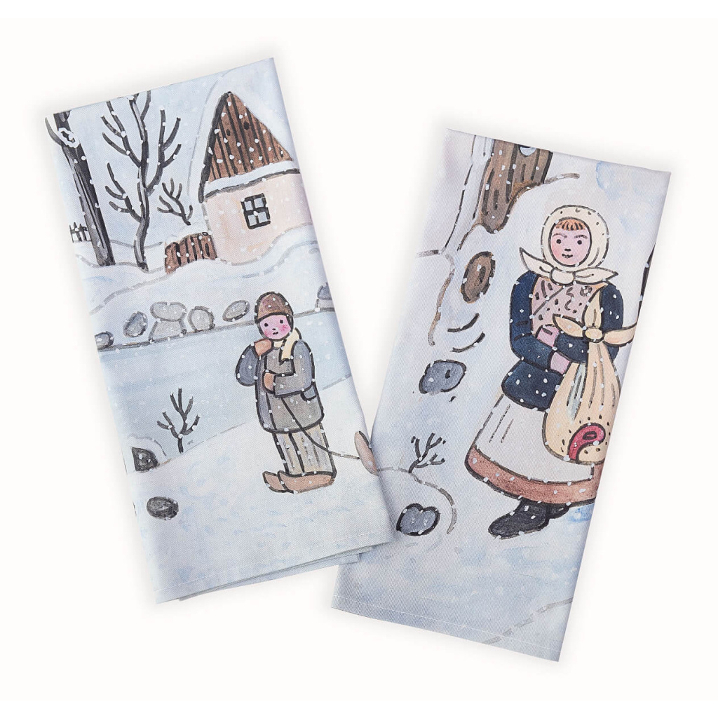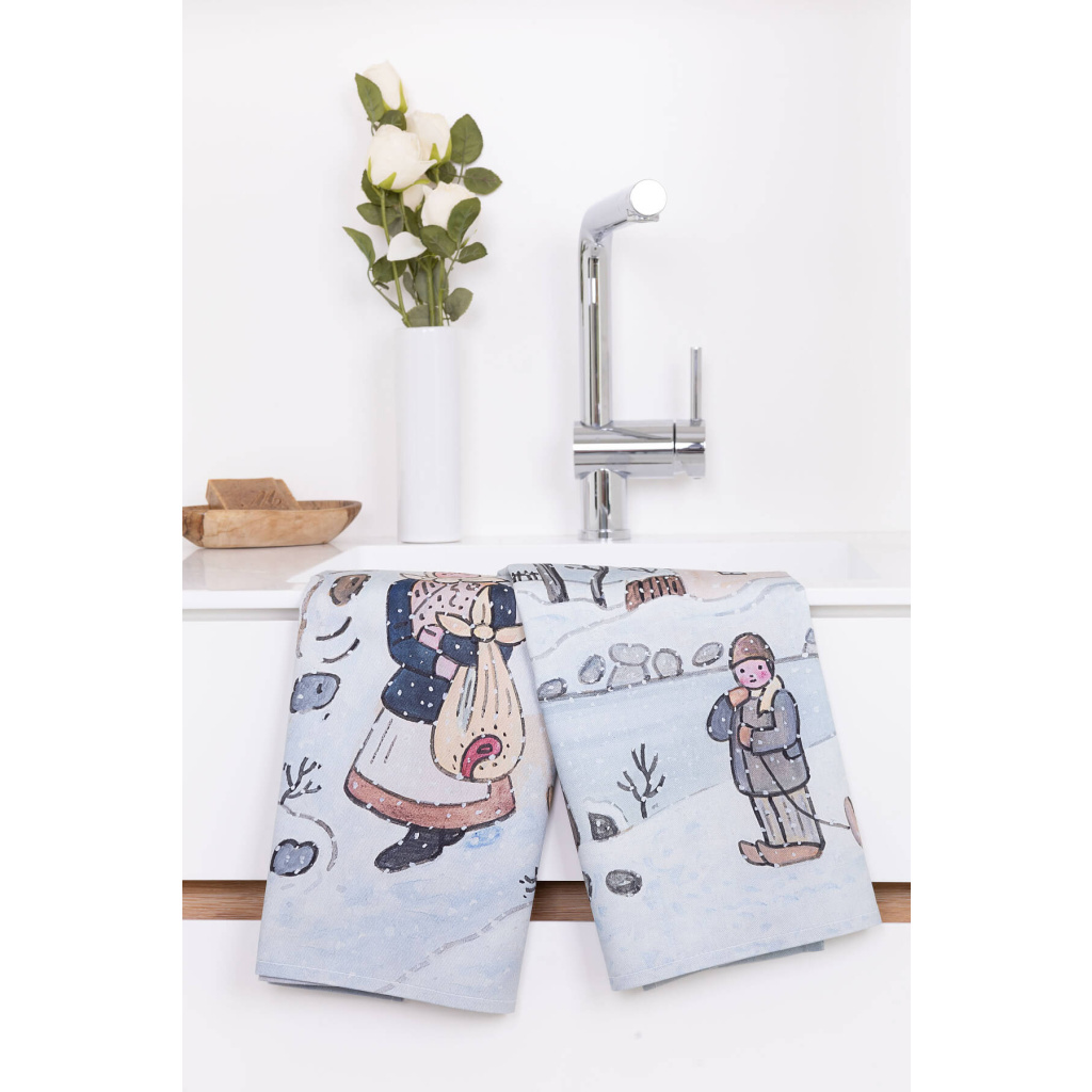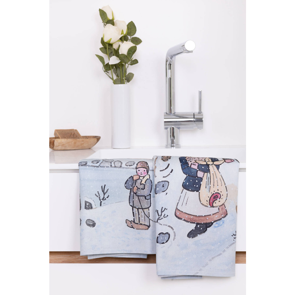 Kuchyňské utěrky Bílá zima se díky nejmodernější digitální tiskové technologii pyšní nádhernými barvami a precizními detaily, které vykreslují autentickou ladovskou poetiku.