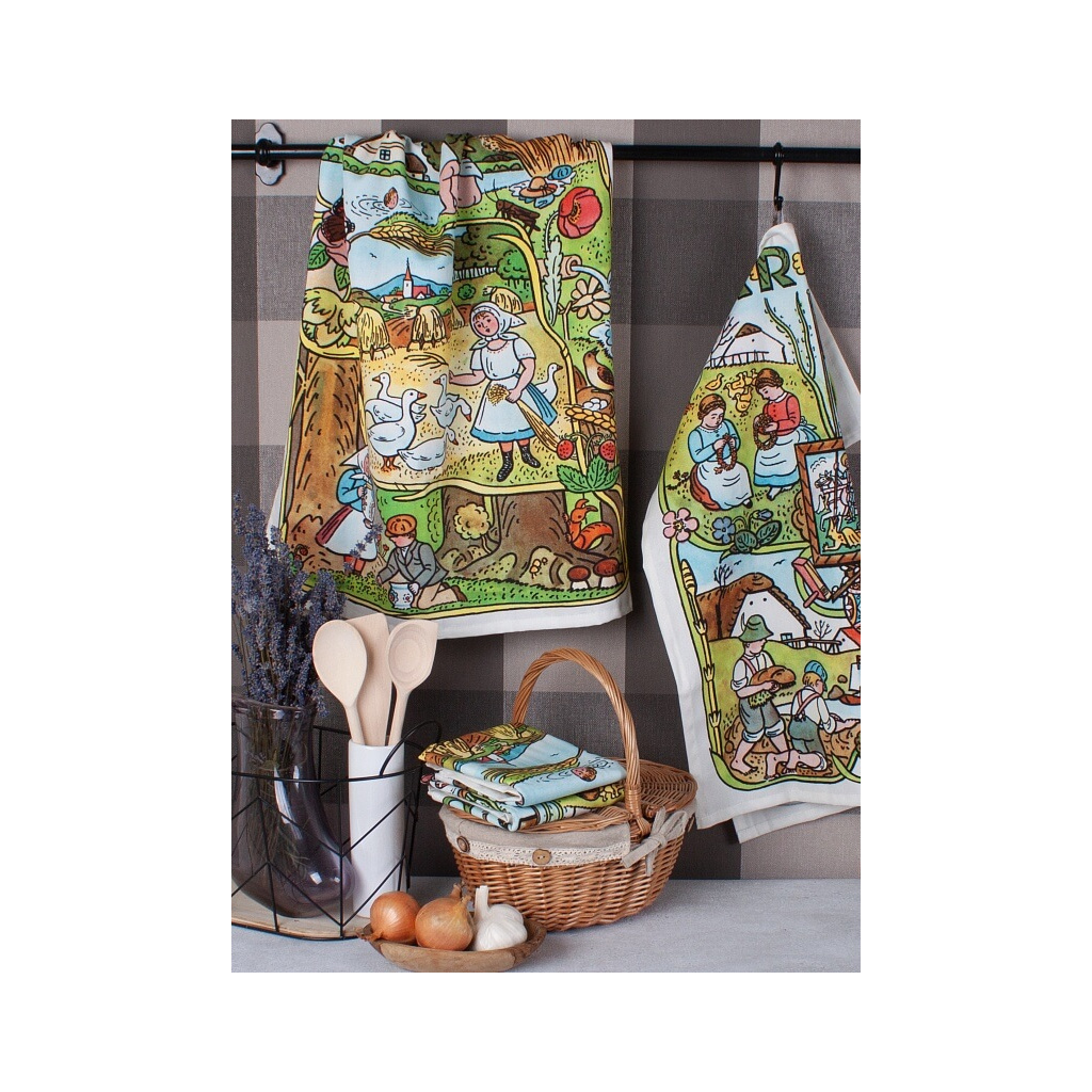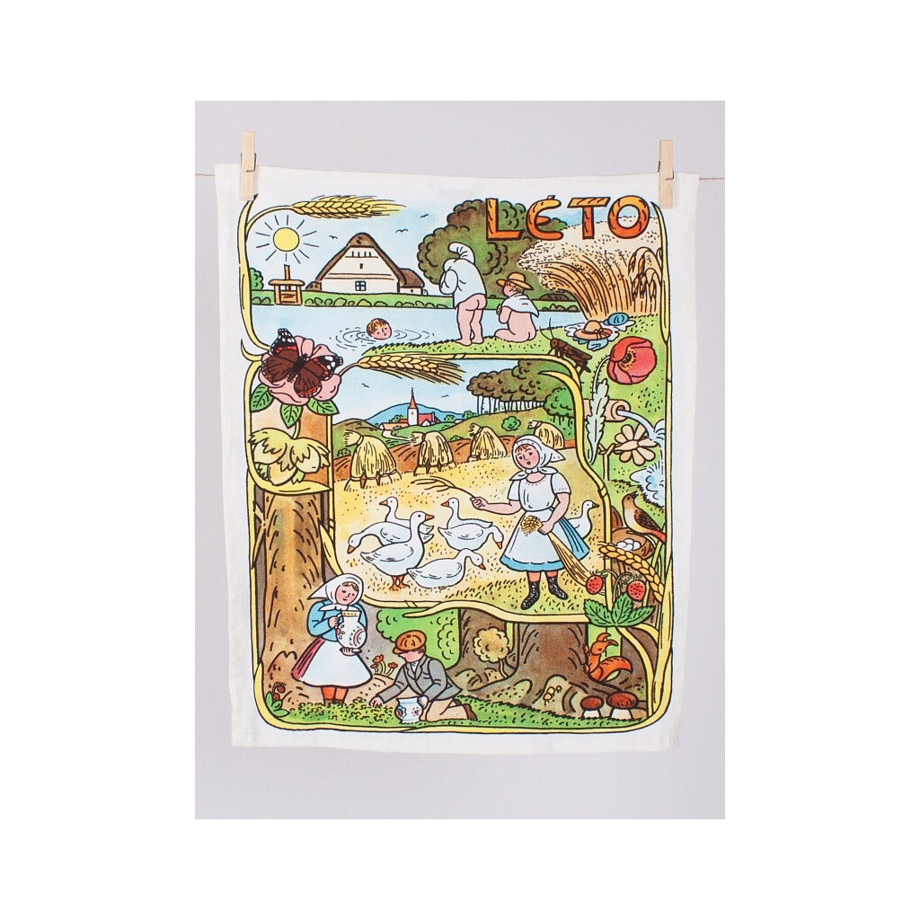 Kuchyňské utěrky Jaro & Léto se díky nejmodernější digitální tiskové technologii pyšní nádhernými barvami a precizními detaily, které vykreslují autentickou ladovskou poetiku.