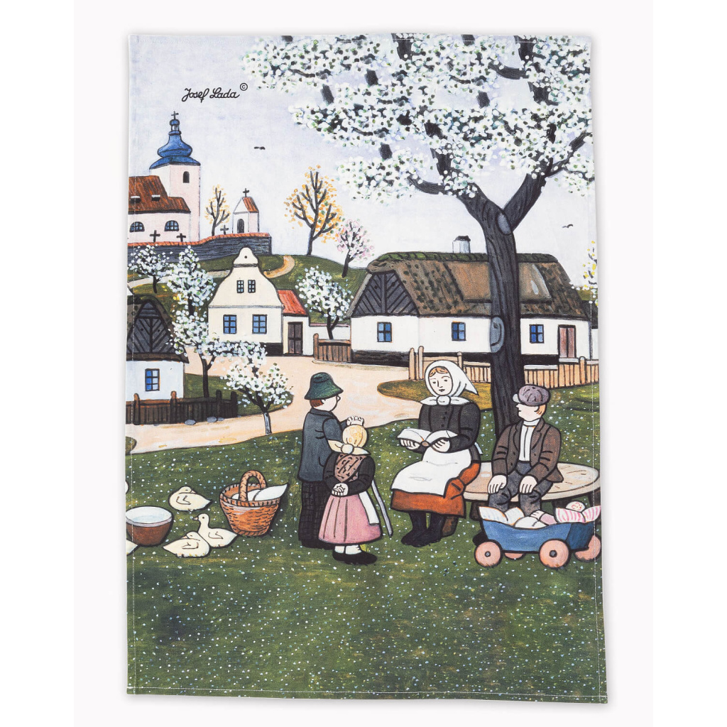Kuchyňské utěrky Jaro na vsi se díky nejmodernější digitální tiskové technologii pyšní nádhernými barvami a precizními detaily, které vykreslují autentickou ladovskou poetiku.