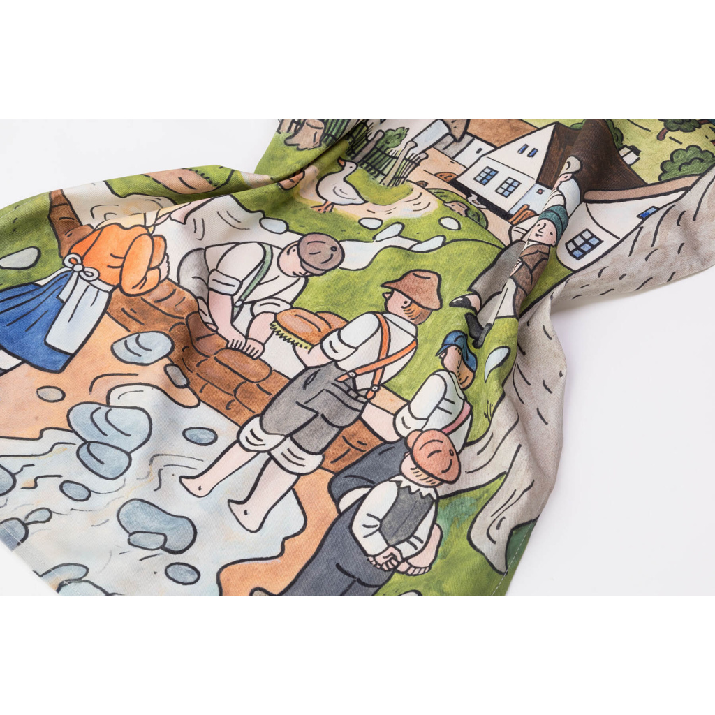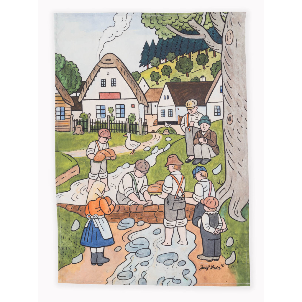 Kuchyňské utěrky Vzpomínky z dětství se díky nejmodernější digitální tiskové technologii pyšní nádhernými barvami a precizními detaily, které vykreslují autentickou ladovskou poetiku.