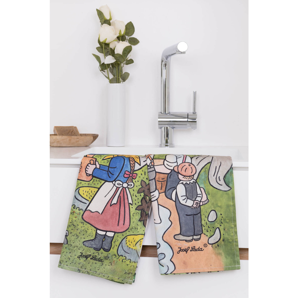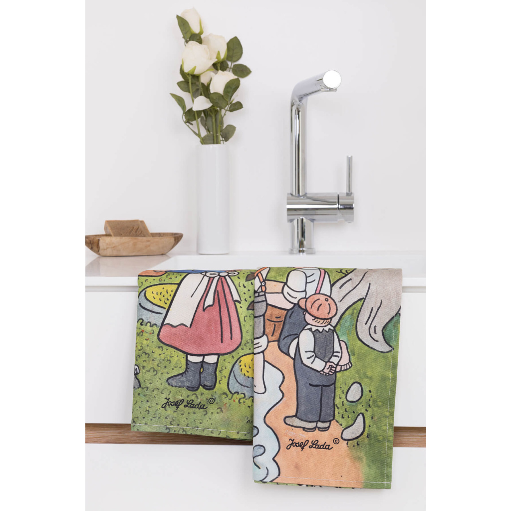 Kolekce bavlněných kuchyňských utěrek s kresbami Josefa Lady vnese do vaší kuchyně jediněčnou atmosféru.