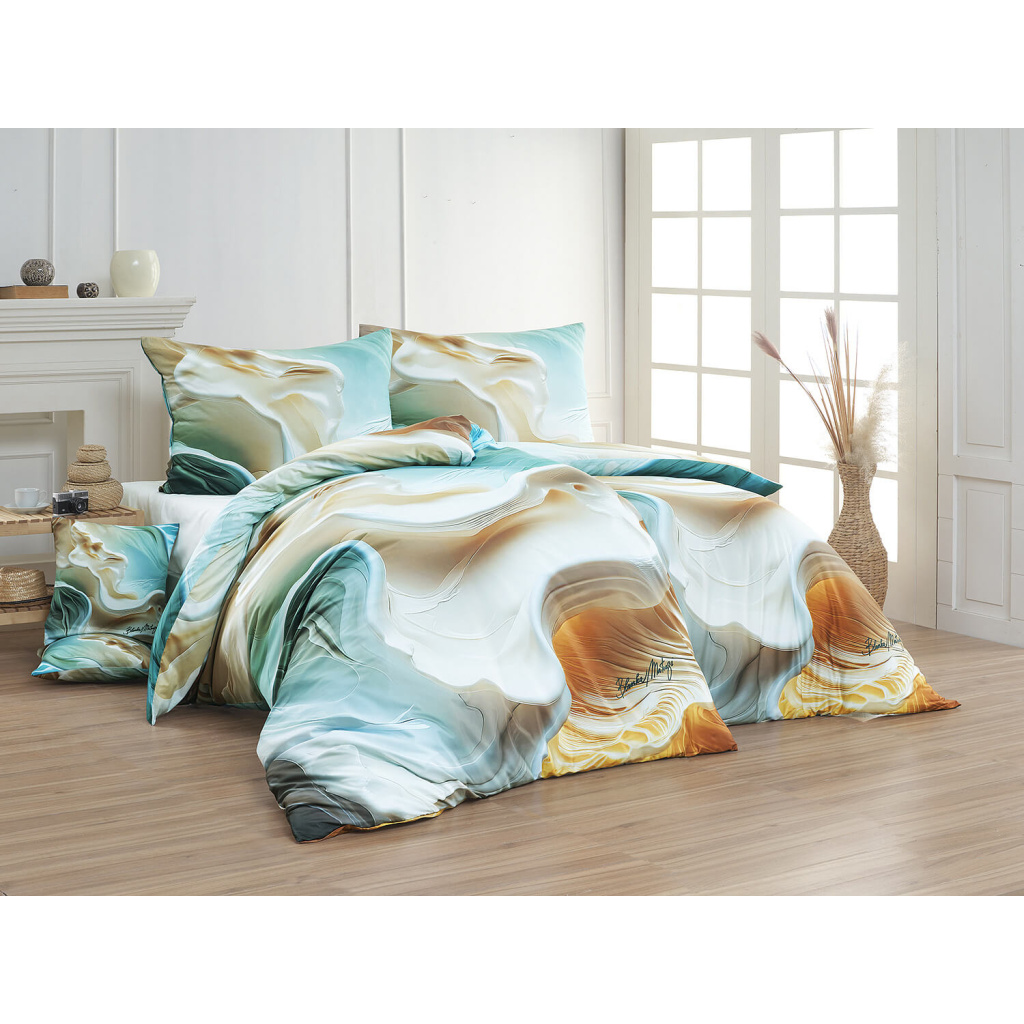 V tomto autorském digitálně zpracovaném motivu se harmonicky prolínají krémové, béžové a mátově zelené odstíny, zvýrazněné zářivým jantarovým tónem. Nejmodernější digitální tisk zajišťuje věrný detail přesně dle autorčina záměru, motiv je z obou stran povlečení stejný.