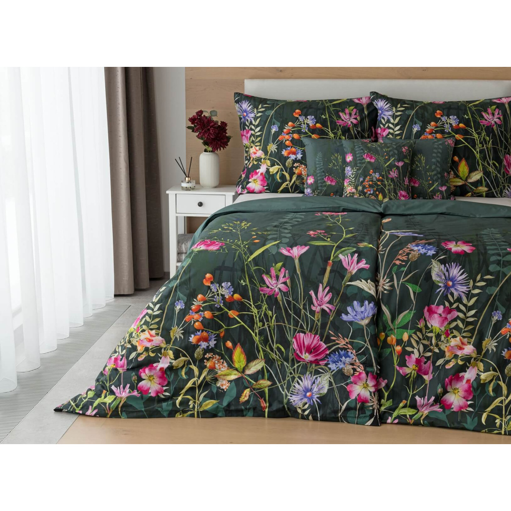 Povlak na přikrývku je z obou stran stejný, povlak na polštář zachycuje z každé strany jinou část květinového vzoru. Povlečení je opatřeno komfortním zipovým uzávěrem.