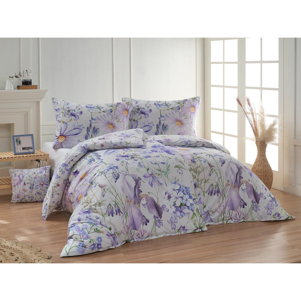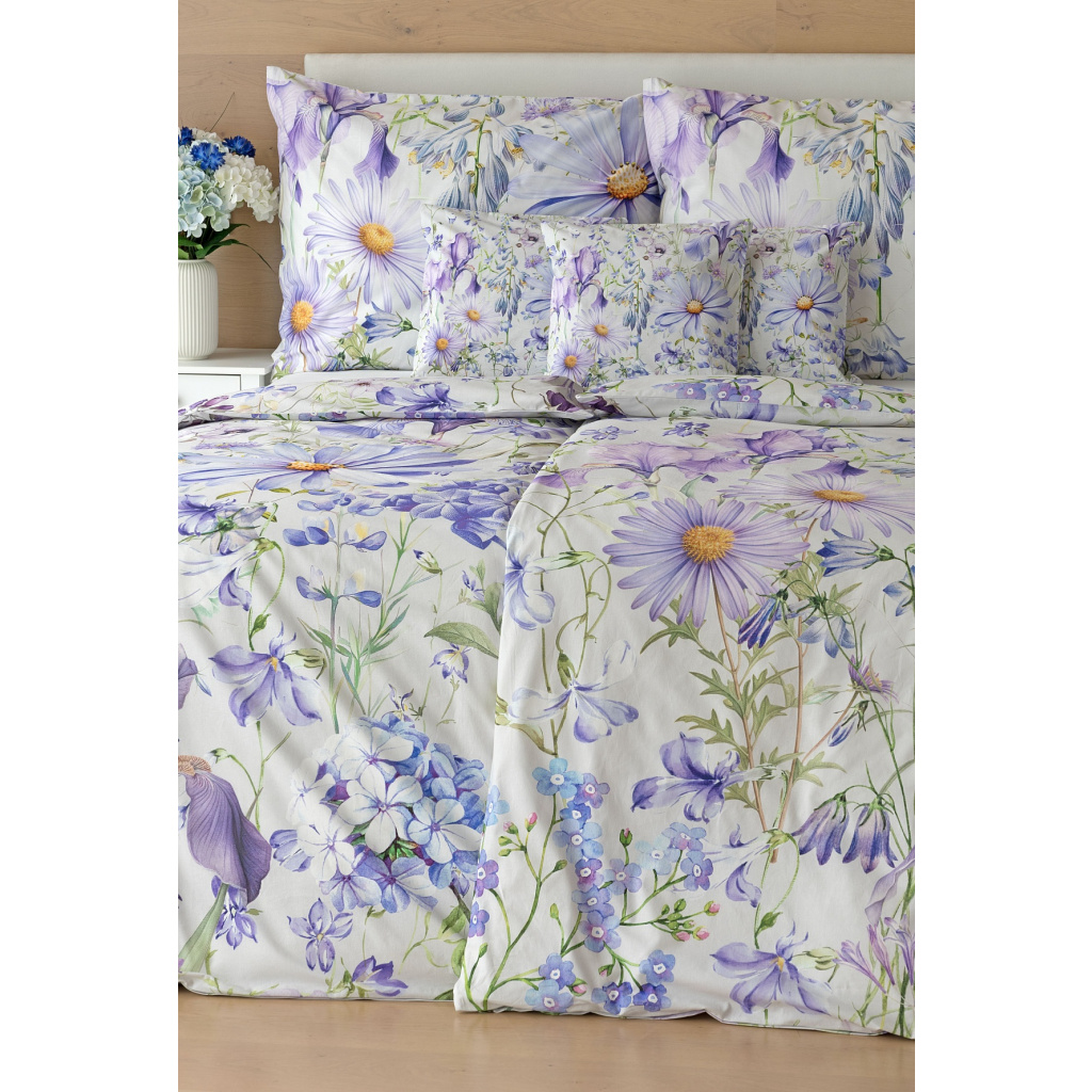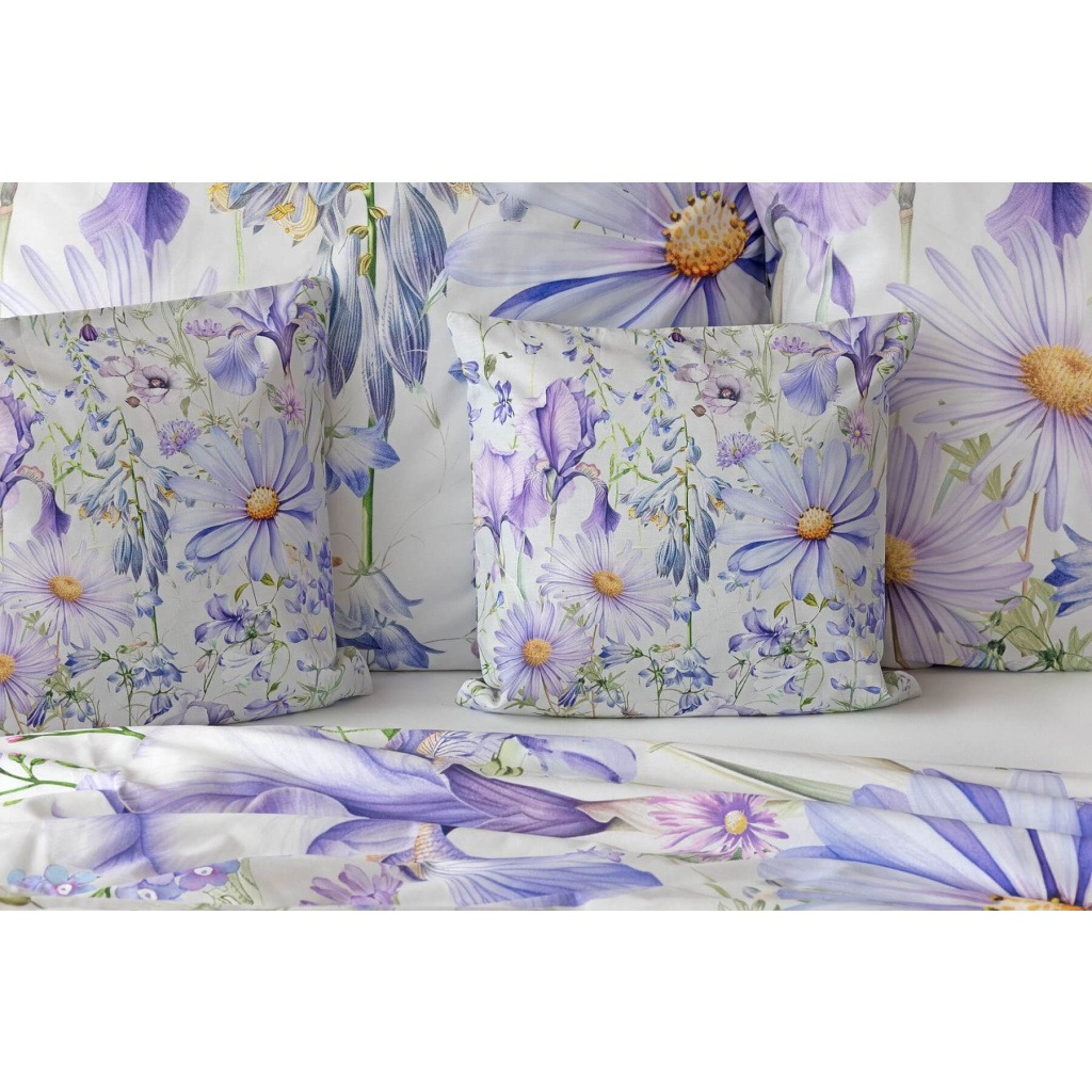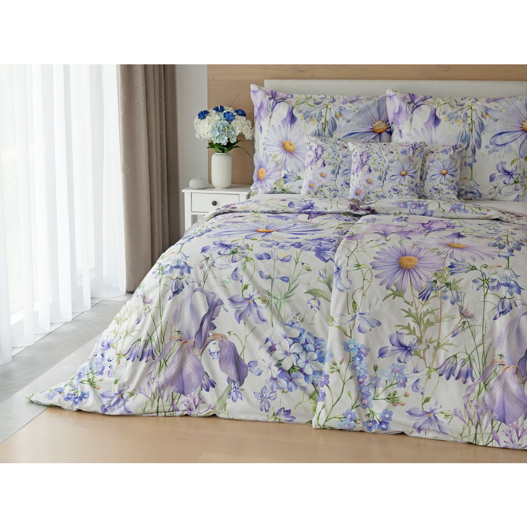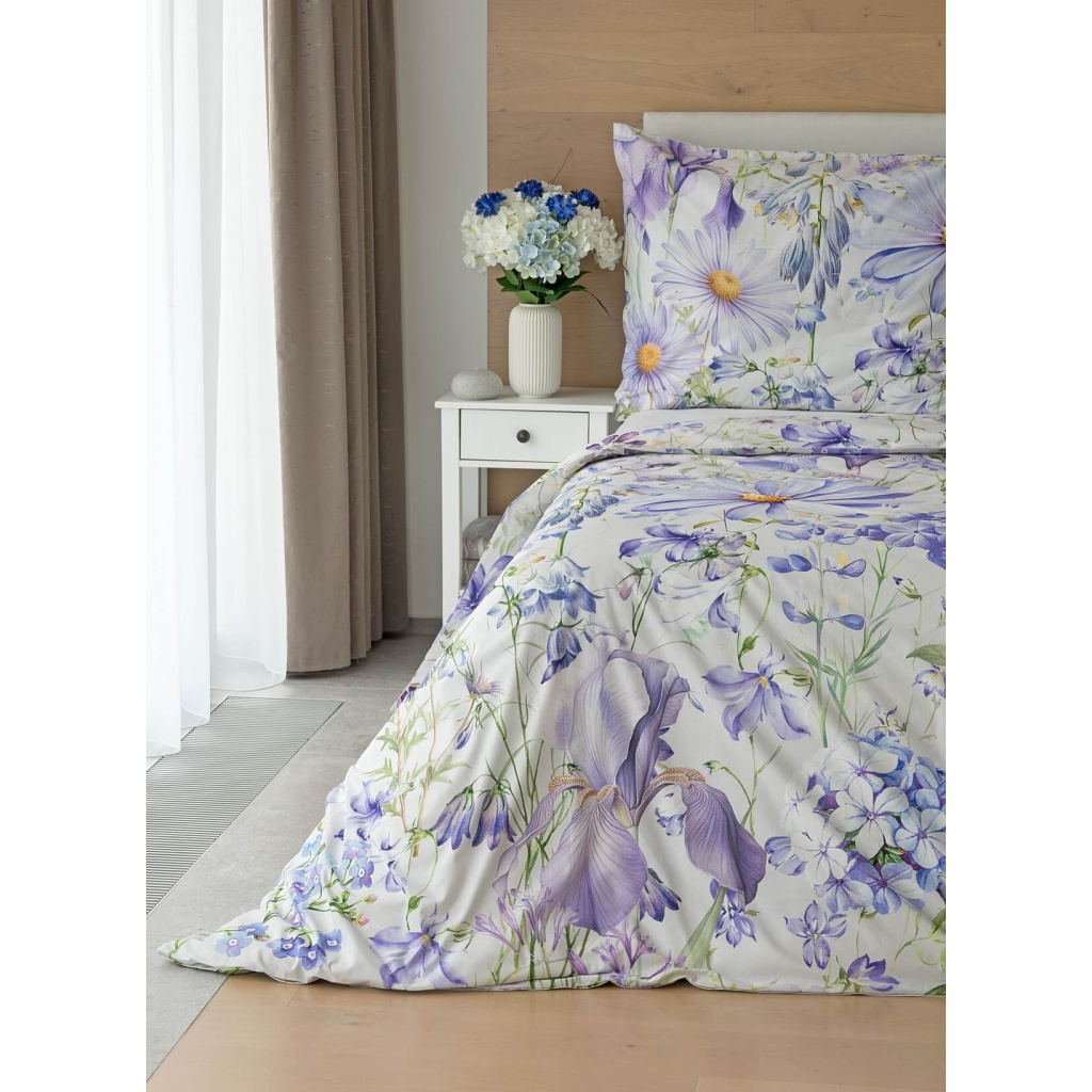 Okouzlující květinové povlečení Mirabel vnese do vaší ložnice nádech svěžesti. Květy kosatců, lučních zvonků, pomněnek i kopretin jsou v návrhu sladěny do atraktivní palety fialových a světle modrých tónů, které působí uklidňujícím a hřejivým dojmem. Díky nejmodernějšímu digitálnímu tisku vyniká florální motiv v precizním detailu.