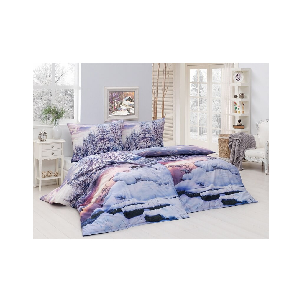 Pohled na romantickou zasněženou krajinu na povlečení Dreaming vás pohladí na duši. Okouzlující chladivé modrobílé tóny se snoubí s fialovooranžovým odleskem na vodní hladině. Díky nejmodernějšímu digitálnímu tisku si vychutnáte jedinečnou autenticitu zimní scenérie.