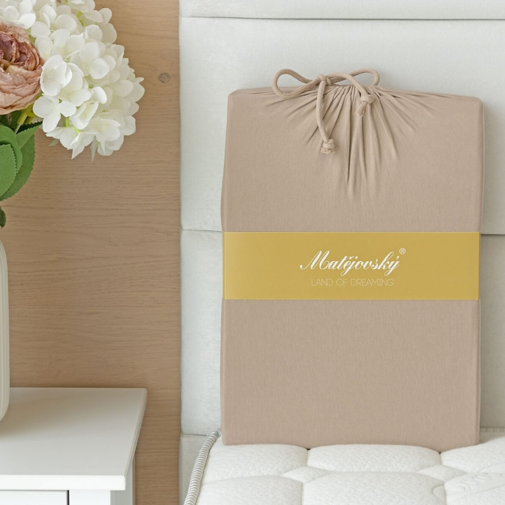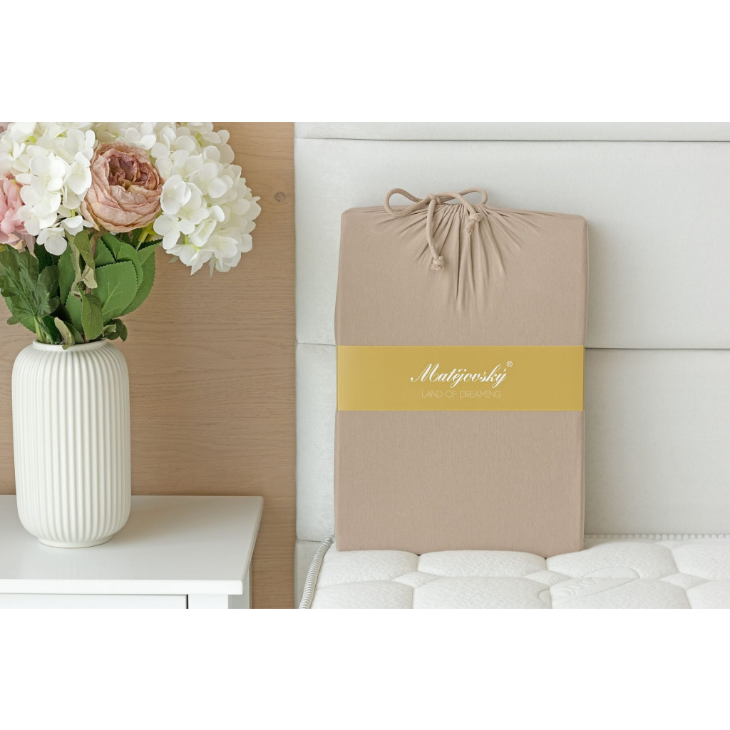 Matějovský prostěradlo světle hnědé jersey s elastanem PREMIUM