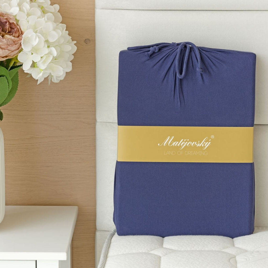 Matějovský prostěradlo tmavě modré jersey s elastanem PREMIUM
