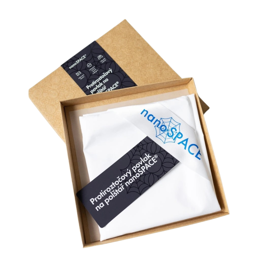 Nanotkanina zachycuje roztoče a zabraňuje jim ve shromažďování a množení uvnitř polštáře. Materiál je přitom stále 100% prodyšný. Nanometr je 1000x menší než mikrometr. Představte si tuto vrstvu jako pavučinu, jejíž otvory mezi jednotlivými vlákny jsou veliké pouhých 80 nm. Rozměry prachového roztoče se pohybují okolo 420 000 nm, jeho alergen je velký 1 000 nm, bakterie 100 – 10 000 nm, vir okolo 100 nm a svrab 300 000 nm. Tudíž nemají šanci skrz tkaninu projít. Nemohou se v polštáři shromažďovat, množit a způsobovat alergické reakce nebo nemoci dýchacích cest. Otvory v konkurenčních mikrovlákenných textiliích a přírodních materiálech mají velikost v mikrometrech, otvůrky v nanotkanině v nanometrech, je to rozdíl asi jako díra ve zdi po kulovém blesku a otvor v papíře propíchnutém špendlíkem. .jpg)