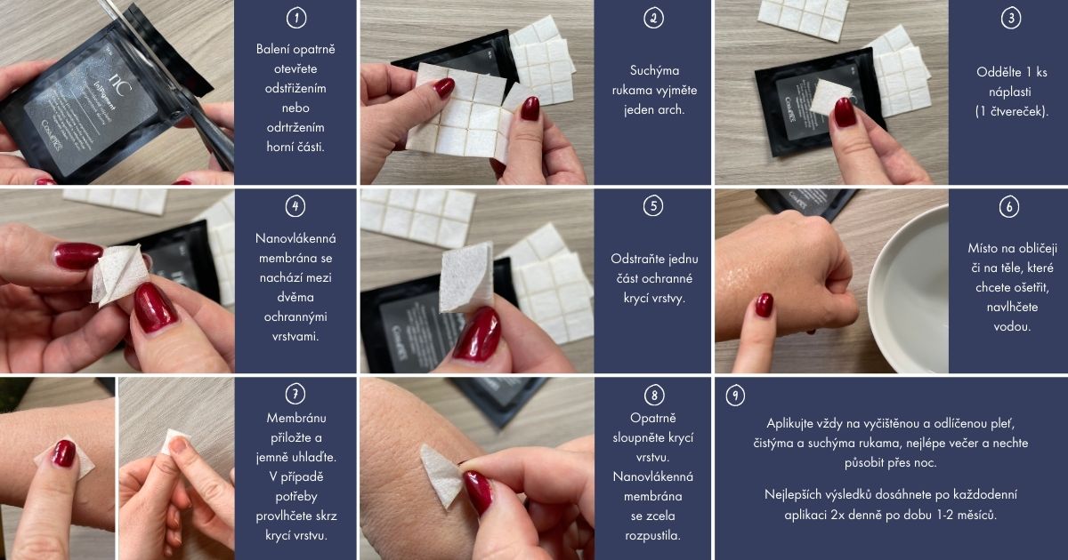 | Typ kosmetiky: | Nanovlákenné náplasti |